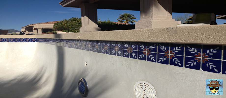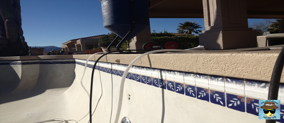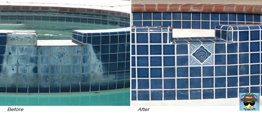 Pool Tile cleaning is done by glass bead blasting or sand blasting the calcium off the tile. Over the years your pool tile will build up calcium deposits, making the pool tile look old and ugly, and if you just let the white deposit build up you might eventually lose your tile. A properly done bead blast, with the right finish should keep your pool tile looking good for about 6 to 10 years, this also depends on the quality of your water chemistry. Our professional pool tile clean up will leave your pool tile looking like new, and if you keep us as your regular pool service provider, we will ensure the quality of your chemical service to minimize calcium build up over your clean pool tile.